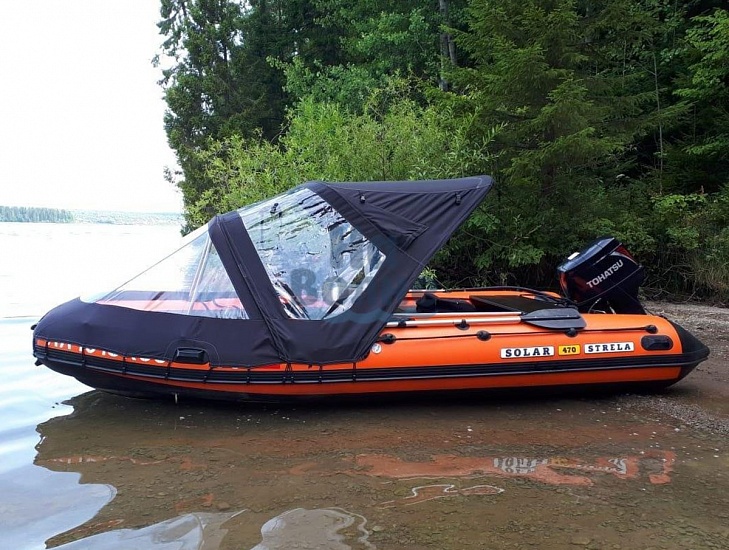 Легкость сборки: конструкция позволяет быстро и легко собирать и разбирать тент, даже находясь в лодке.